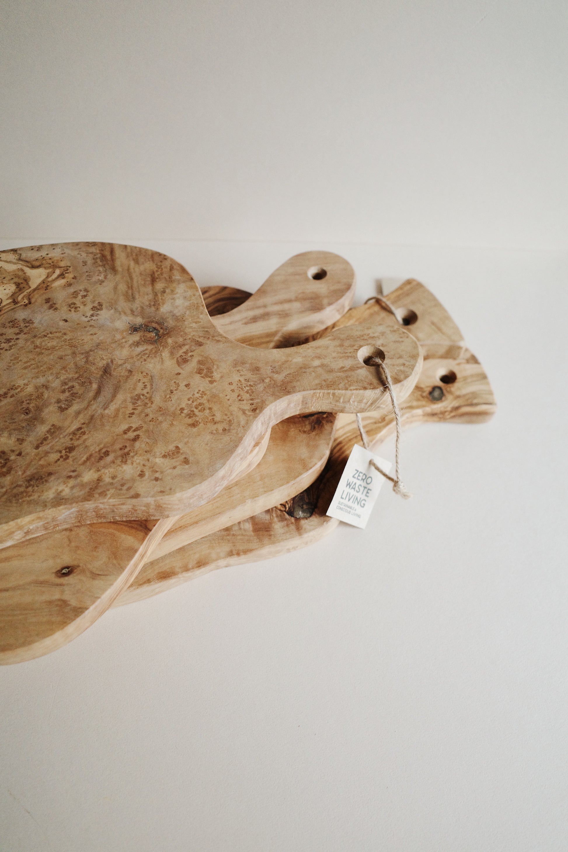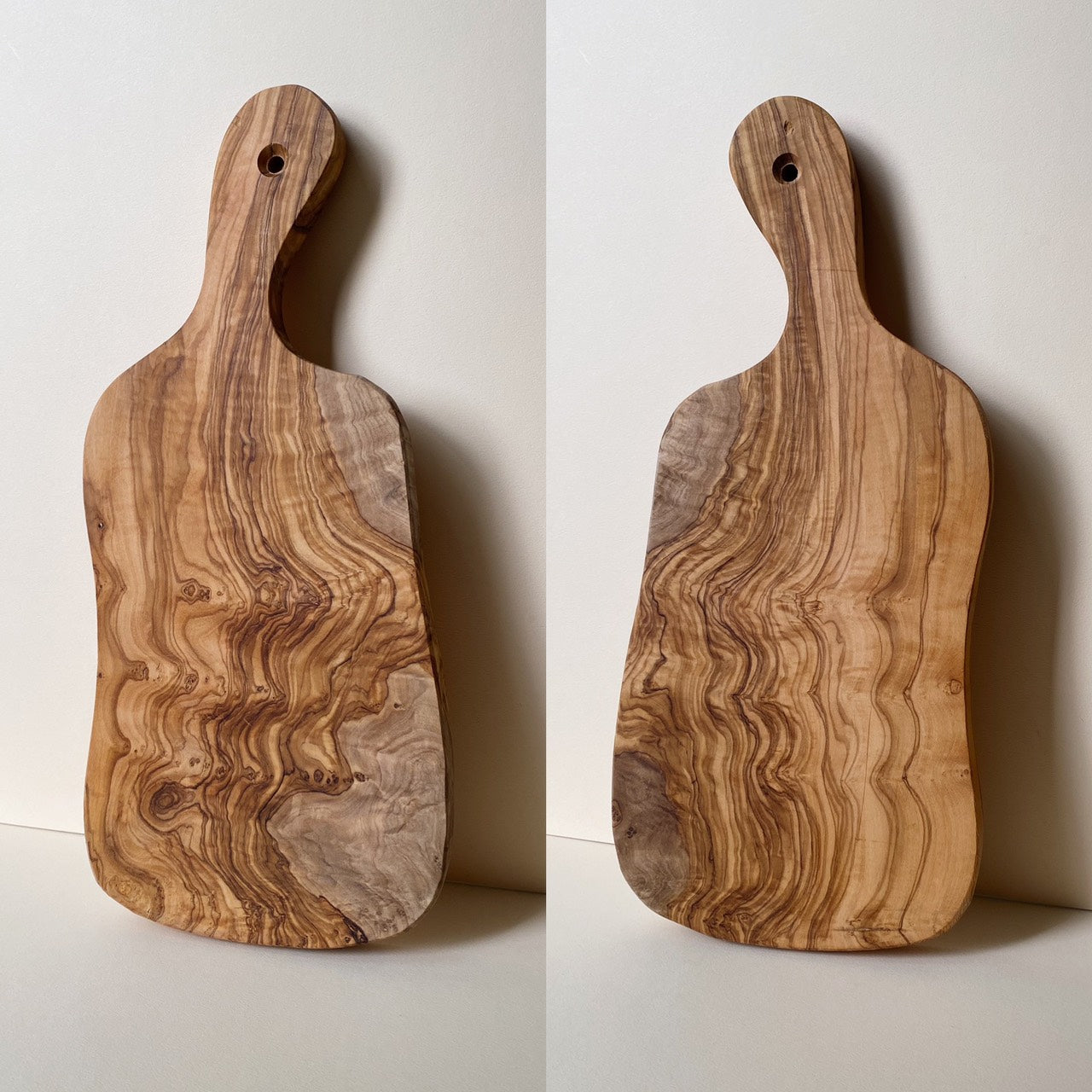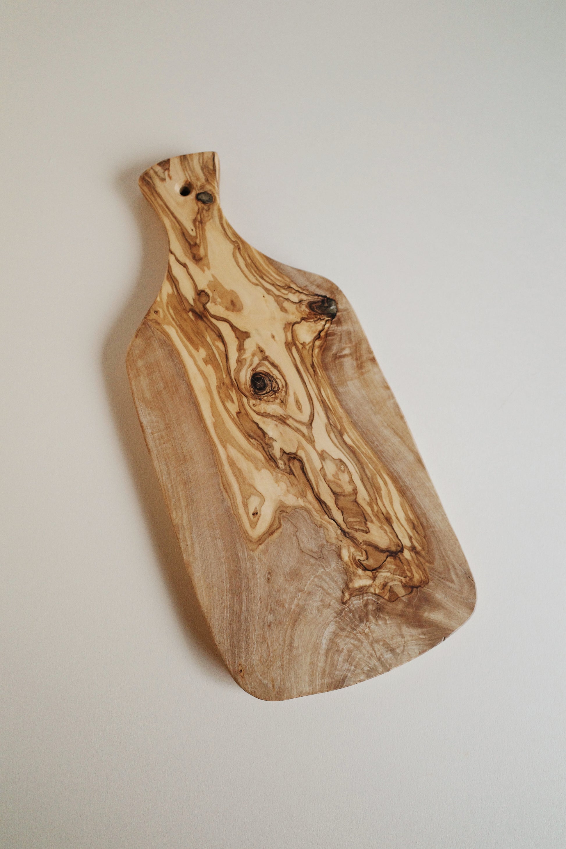 オリーブの実を収穫し役目を終えた古木を原料に、職人が1つ1つ削り出し、命を吹き込んだカッティングボードです。チュニジアからフェアトレードで輸入しています。