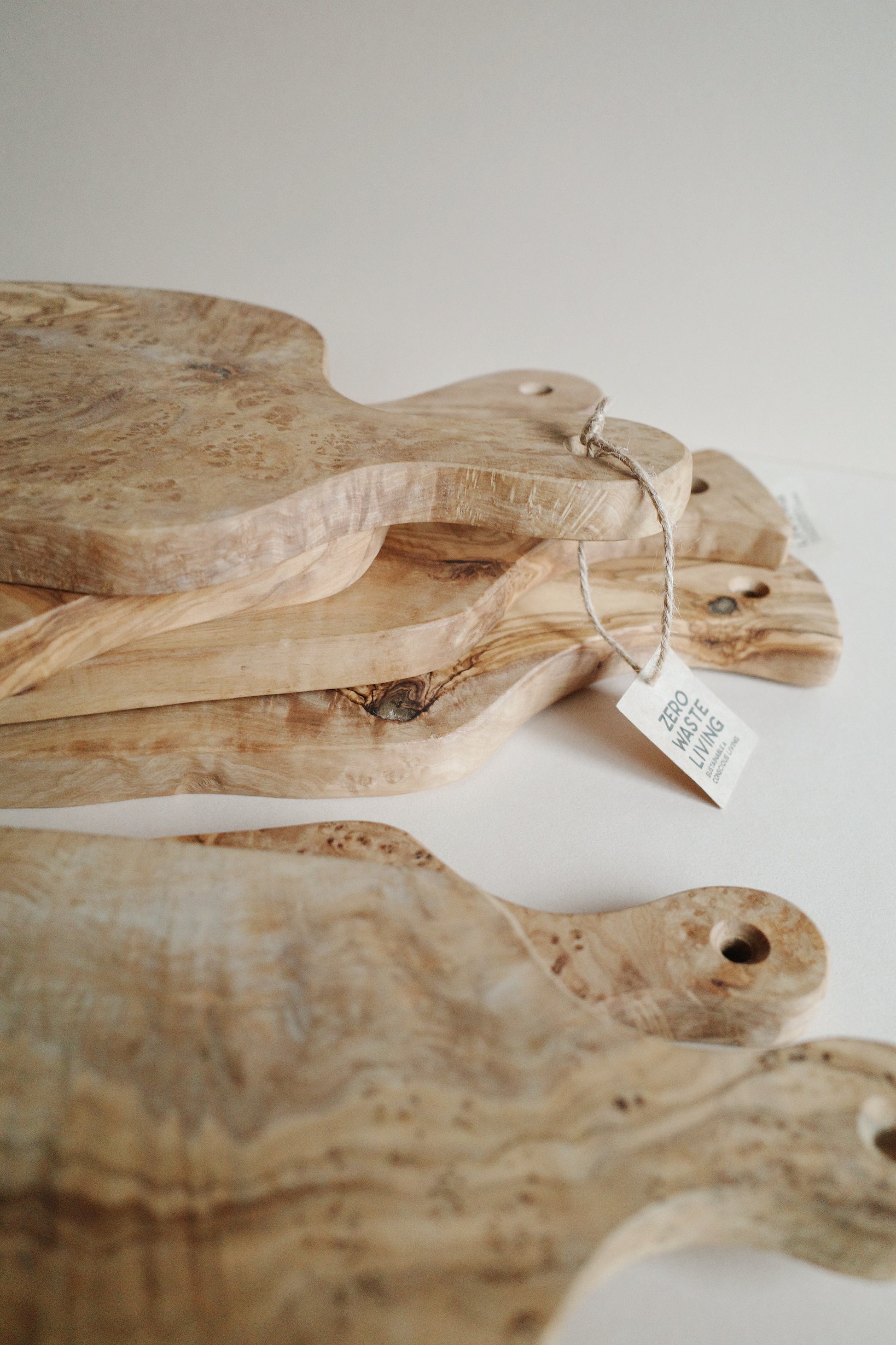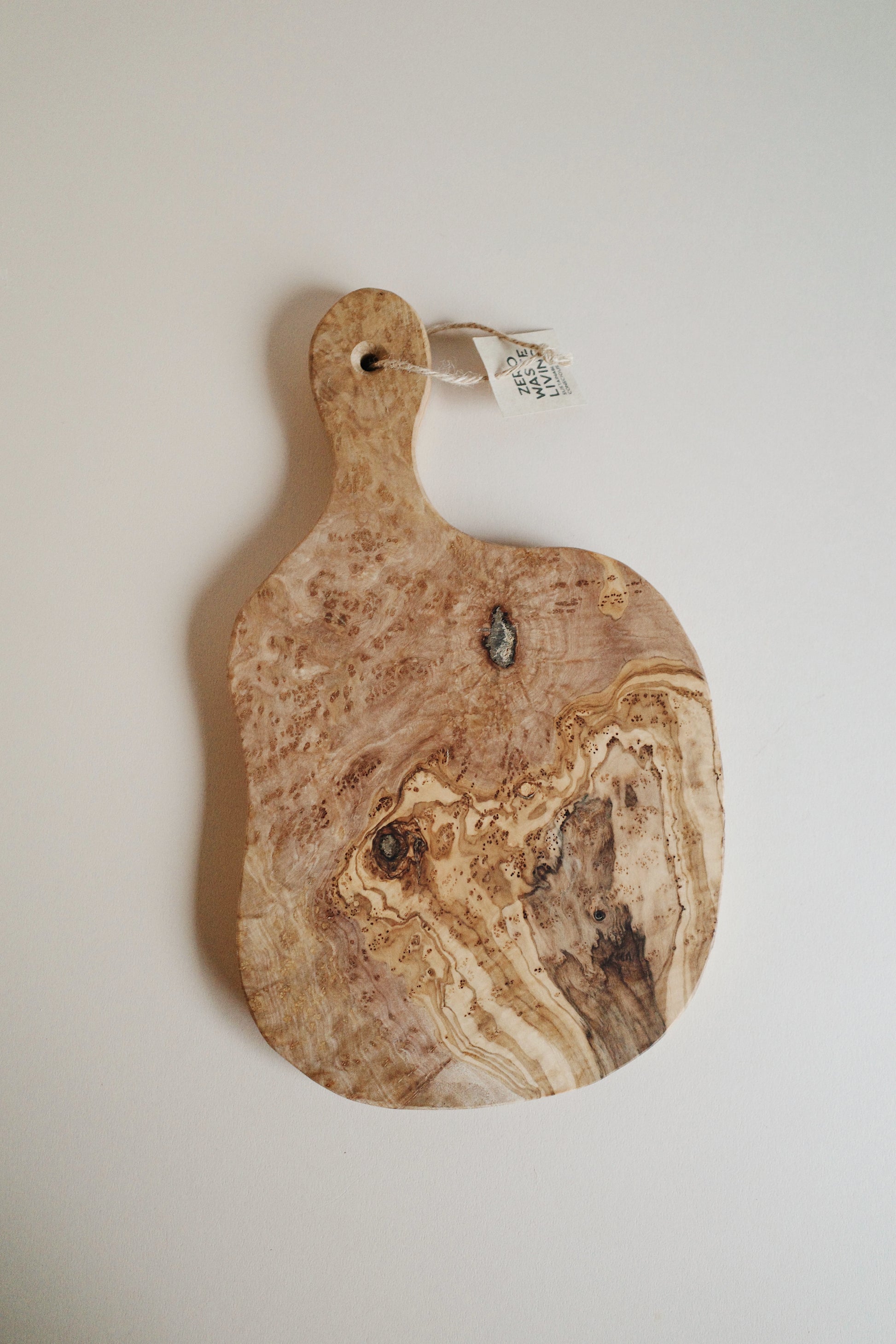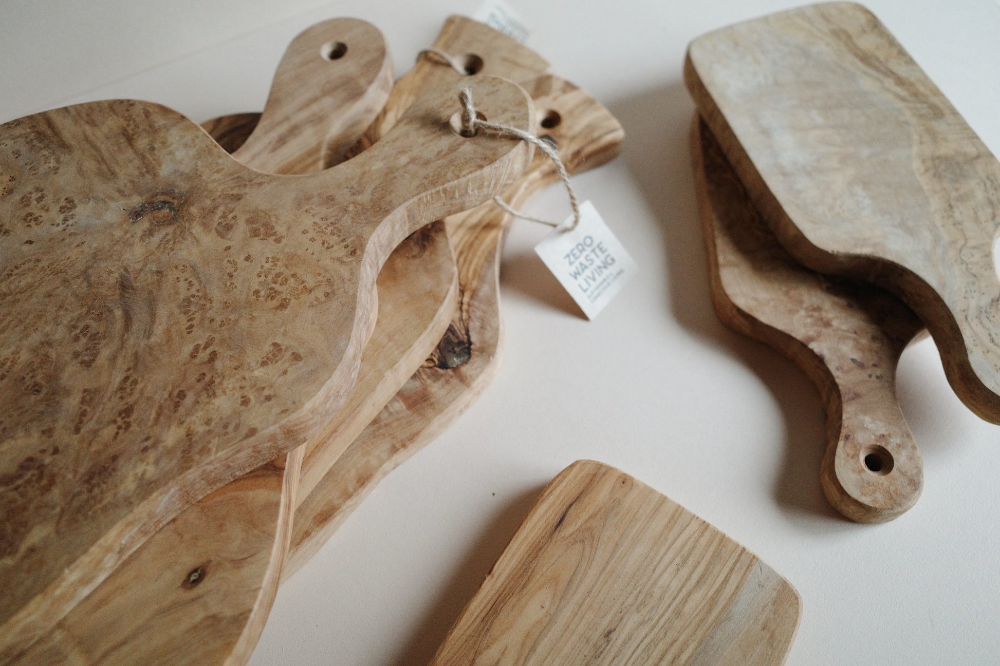 オリーブの実を収穫し役目を終えた古木を原料に、職人が1つ1つ削り出し、命を吹き込んだカッティングボードです。チュニジアからフェアトレードで輸入しています。