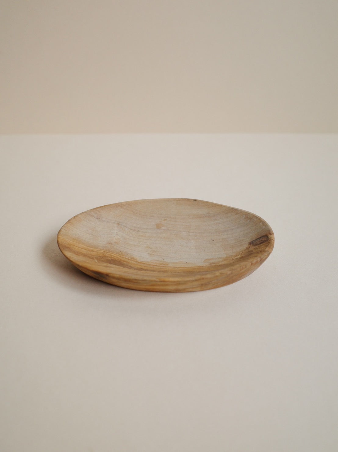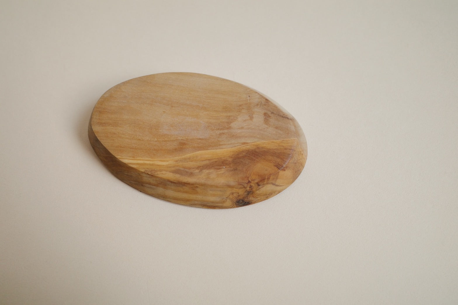 オリーブの木を丁寧に削りだして作られたラウンドトレイ。小皿としての使用はもちろん、石鹸置きやアクセサリートレイとしてもお使いいただけます。