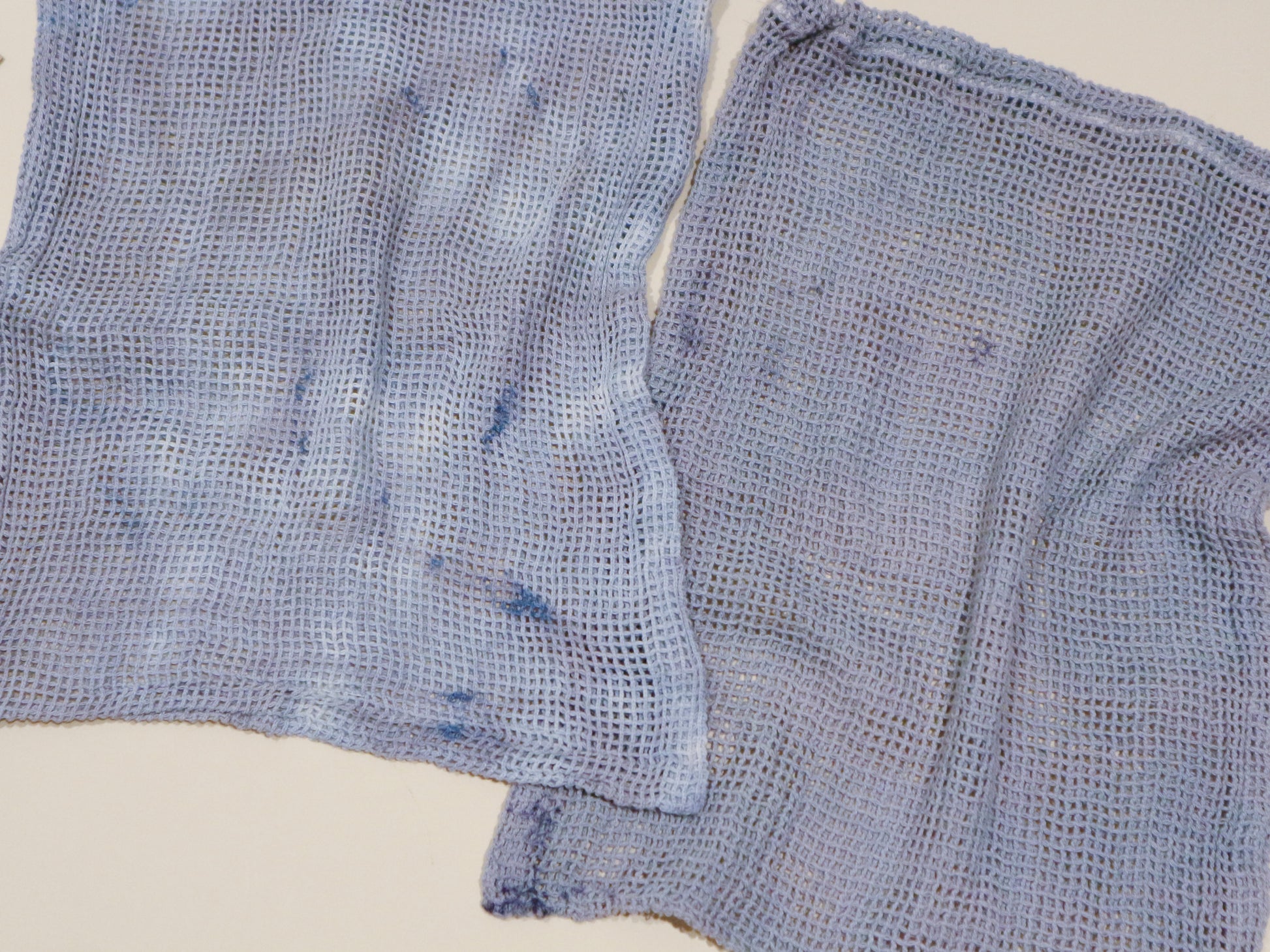 ・Wood blue(ログウッド染め) 木の樹皮から出る美しいブルーや紫です。