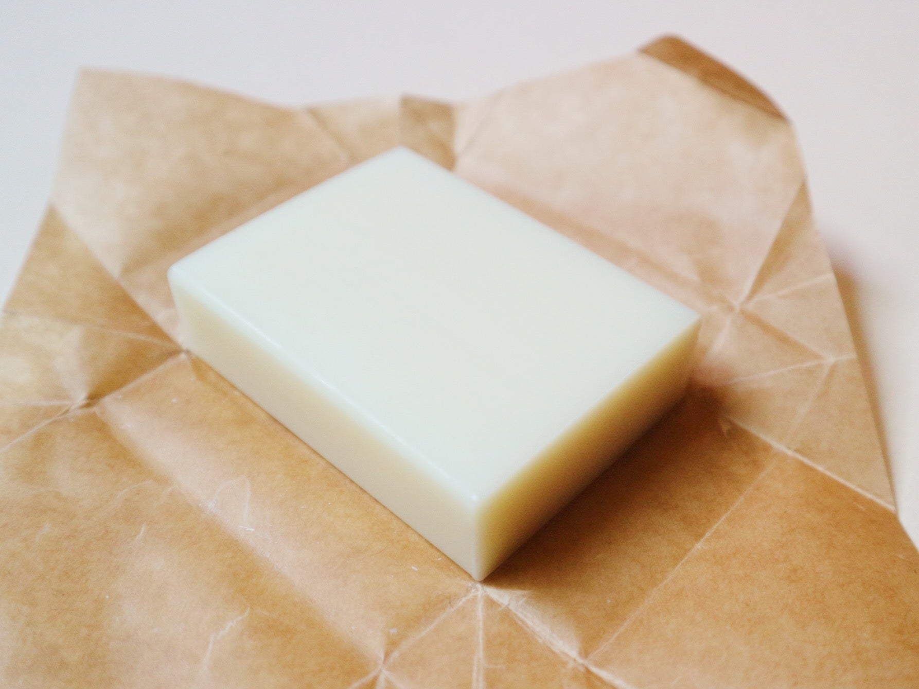 石鹸はプラスチックフリーな簡易包装の紙パッケージです。