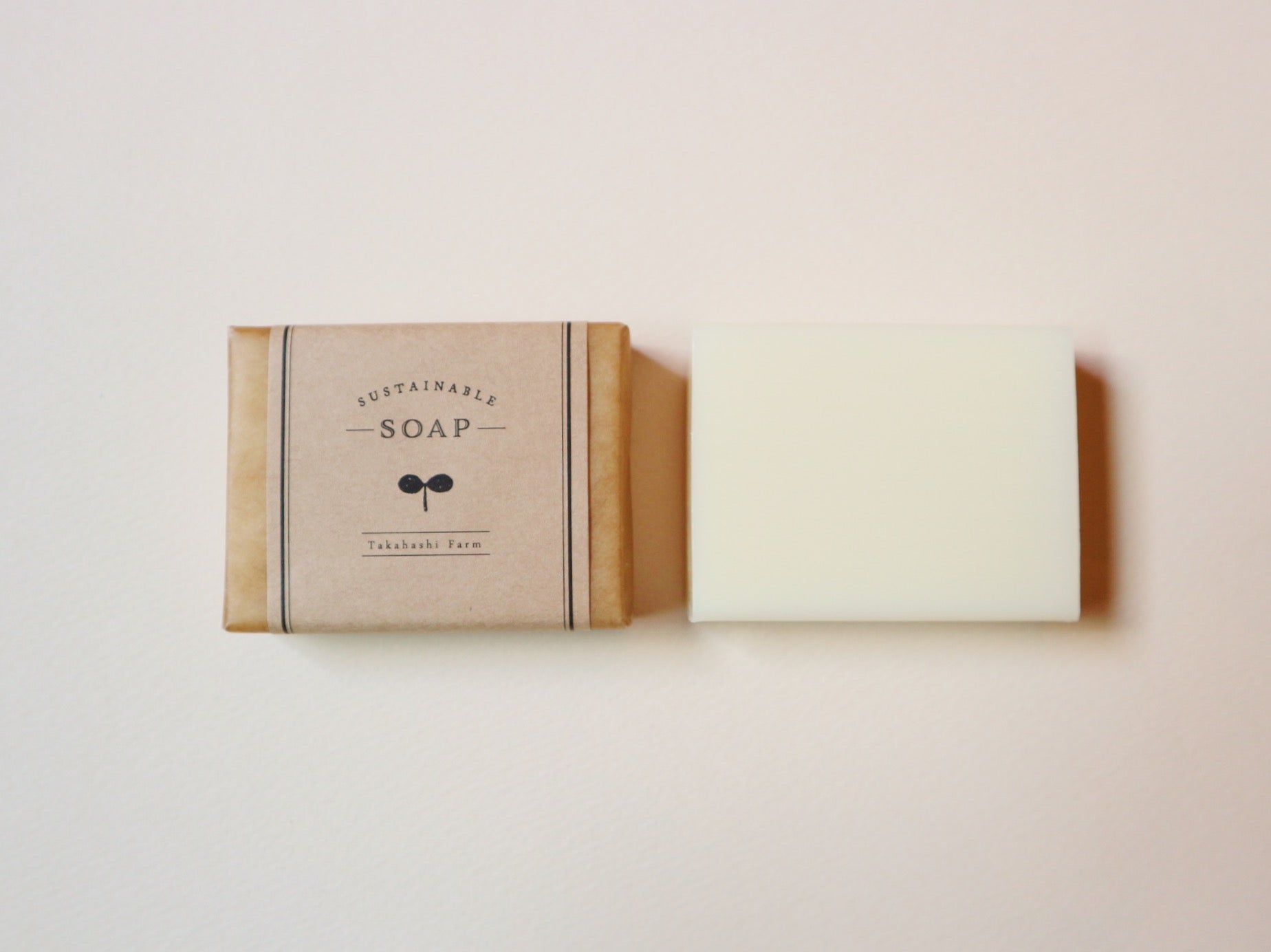 原材料にこだわり、オーガニック石鹸素地に高橋農園の無農薬有機米の米ぬかエキスと高橋農園の自然栽培大豆のエキスを加えた、無添加石鹸。100%植物由来の原料で丁寧に作られています。